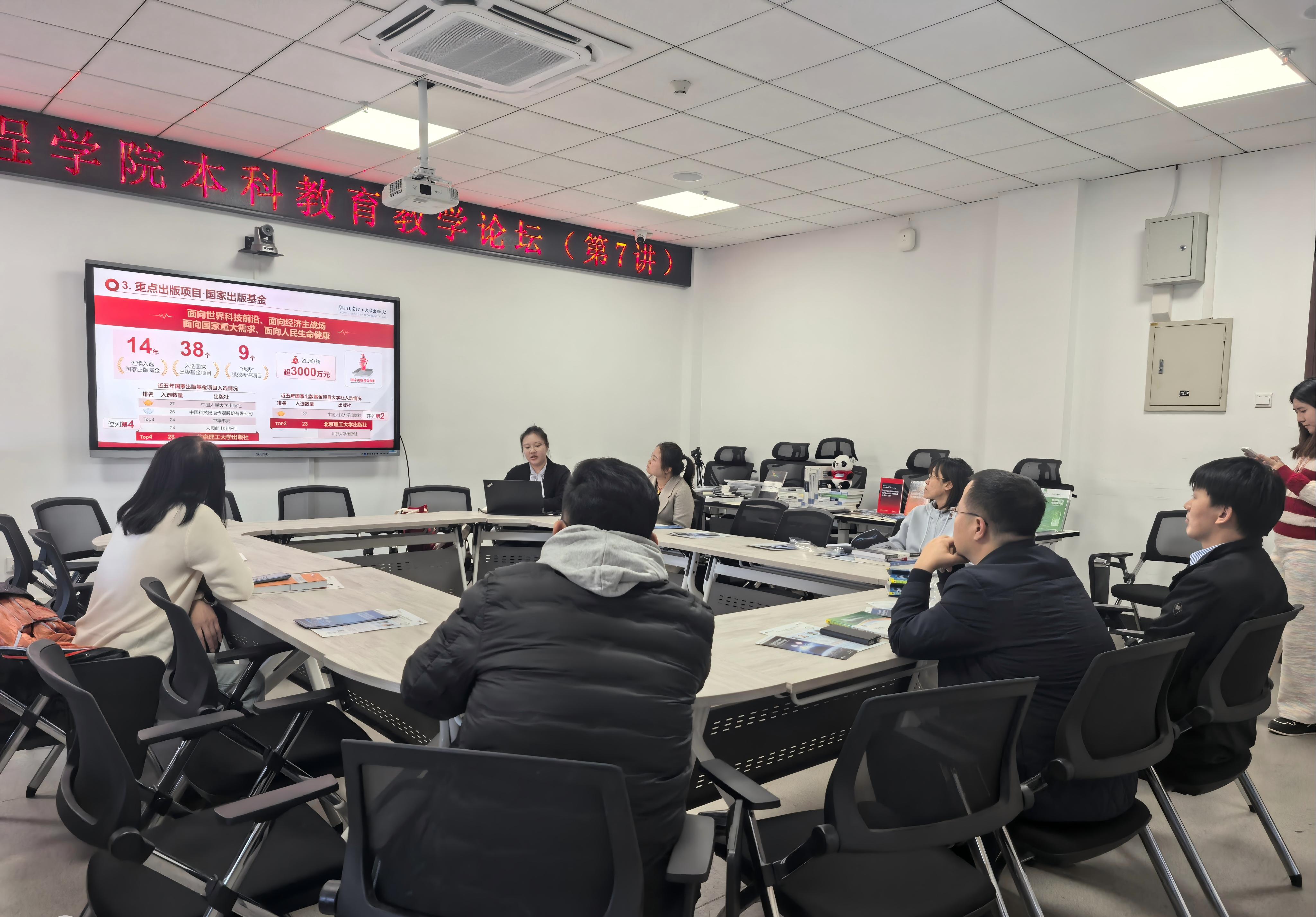 会议邀请了北京理工大学出版社学术出版中心主任国珊老师作为主讲嘉宾,围绕目前数字教材建设的路径探索与未来展望、国际版权输出与引进、英文国际学术期刊的投稿与发表进行了介绍,并结合北京理工大学出版社近年的优秀教材建设国家级获奖教材成果进行了展示。