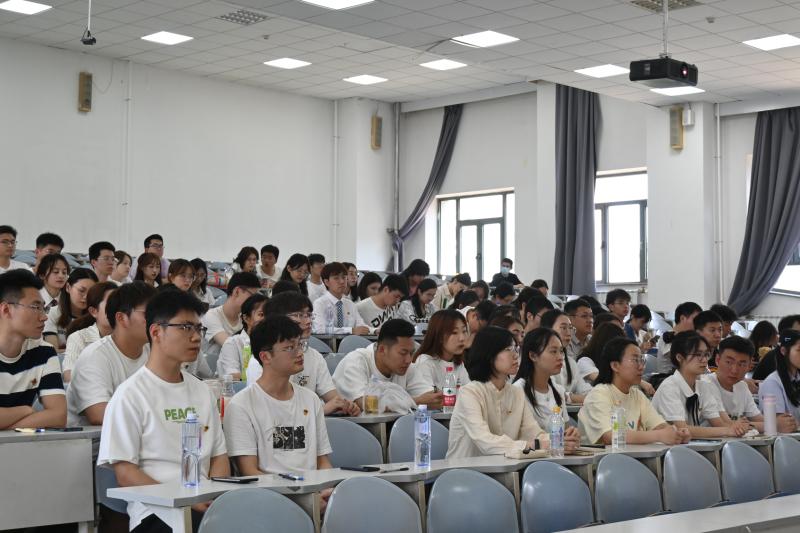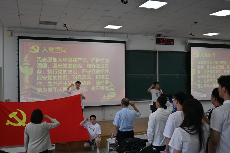 于2023年6月15日,在南岭校区逸夫楼A411报告厅组织开展了毕业生主题党课暨重温入党誓词活动。体育投注党委书记刘远老师、体育投注党委副书记兼副院长华蕊书记、体育投注本科生辅导员严冬老师、张晗禹老师,以及全体本科毕业生党员参加本次活动,学校党建工作联络员刘炳恩受邀列席活动。